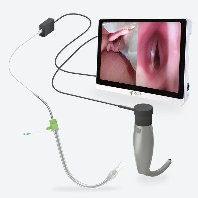 Video Laryngoscope with detachable 3.5-inch monitor and disposable blades in multiple sizes